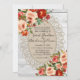 Esses convites de casamento de madeira branca e renda apresentam flores de papoula vermelhas e rosas cor-de-rosa. Perfeito para um casamento rústico no campo ou para uma celebração de casamento DIY. Muito elegante.
