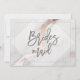 UM CARTÃO DE NOIVA MODERNO E CLÁSSICO COM EFEITO DE MÁRMORE E OURO ROSA COM LINHAS GEOMÉTRICAS E FONTE DE LETRA SCRIPT EM ALTA. PARTE DE UMA COLEÇÃO