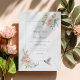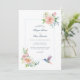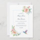 Defina o tom para uma celebração romântica e atemporal com este design de casamento floral em aquarela, criado para casais que amam elegância suave e detalhes atenciosos. A frente apresenta flores delicadas em tons de rosa e marfim, combinadas com folhagens graciosas, emolduradas por um layout limpo e arejado que parece clássico e fresco. Um beija-flor encantador em aquarela adiciona um toque simbólico sutil de amor, alegria e novos começos.