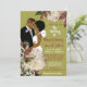 Este belo convite afro-americano mostra uma noiva e um noivo afro-americanos em um fundo de ouro e rosa com um arranjo floral suave. Uma escolha perfeita quando você quer mantê-la elegante e elegante. Se você ainda está procurando mais ideias de casamento, veja nossas coleções em https://www.zazzle.com/collections/african_american_bridal_and_wedding_invitations-119460392297186590