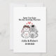 Receba a notícia mentosa aos seus convidados de casamento com um tema único, fofo e casal, salve o cartão. Apresentando uma doce noiva e noiva de um gato cartoon, esta simples mas distintamente fofa carta certamente tornará cada convite de casamento especial. Certifique-se de que todos os seus amigos e familiares tenham tempo para se juntarem a vocês para a emocionante ocasião do seu grande dia com este adorável "casal de gato" guarde o cartão de data.