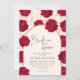 A noiva do chá de panela de tema florado apresenta rosas e peões em cor vermelha, rosa e marrom com padrão floral e botânico dourado.Um fundo de cor branca e ouro perfeito com arranjo floral vermelho.