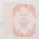 Este design apresenta rosas em aquarela suave em tons de rosa cor-de-rosa combinadas com folhagem dourada delicada. O arranjo etéreo cria uma atmosfera romântica perfeita para um evento de primavera. Os traços artísticos e a paleta pastel sutil evocam um senso de elegância atemporal e beleza natural.