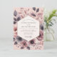 Um arranjo romântico e sombrio de flores pintadas estabelece um tom elegante. Este design artístico apresenta um belo contraste entre peônias suaves de cor rosa empoeirado e anêmonas dramáticas de cor ardósia escura. Folhas delicadas de cor malva e lavagens etéreas de aquarela completam esta composição botânica sonhadora e sofisticada para o seu dia especial.