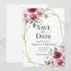 Cartão de save the date de casamento floral com aquarela pintada à mão com buquês de flores rosa desbotado e borgonha com folhagem e moldura de folha de ouro digital. Você pode personalizar as palavras, o estilo da fonte, a cor e o tamanho na frente e no verso do convite. Este cartão de save the date de casamento é parte de um conjunto completo de casamento com papelaria correspondente.
