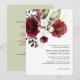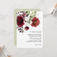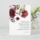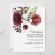 Ramo rústico e elegante de flores com contorno floral dourado, rosas vinho, tinto e rosa ao longo da parte superior do convite de casamento. Texto adicional no verso do convite para detalhes do casamento. Itens correspondentes nesta coleção.