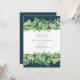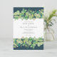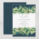 Com folhas frescas de eucalipto verde que enquadram os detalhes do seu casamento definidos em tipografia elegante neste convite de casamento com tema de casamento moderno no campo. Concebido por Thisisnotme©