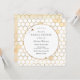 Chá de panela de ouro com o tema das abelhas, com um padrão dourado em favos de mel e abelhas que se zurpam. Personalize com suas informações ou clique em "Clique para personalizar mais" para editar estilos de fonte, tamanho e cores.