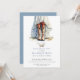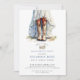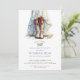 Um convite à festa de solteira de aquarela russa, com noiva de vestido com botas. Para uma comemoração moderna do estilo da moça russa. Peça seus convites em impressão, downloads digitais ou ambos! Cor azul sólida na parte de trás do convite.