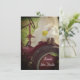 Anuncie seus futuros núpcias sobre o tema da fazenda com a charmosa Noiva sobre o Casamento da Fazenda Trator Country Salve os Anúncios de Data. Este casamento chic, informal e elegante e personalizado, mantém o anúncio da data com uma fotografia quase melhorada digitalmente de uma noiva vestindo um vestido de noiva branco de marfim, véu noivo e botas de cowboy ocidentais de couro castanho e carregando um buquê de margaridas amarelas sentadas sobre um velho trator vermelho antigo na fazenda. Inpo perfeito para uma cerimônia casual de casamento do celeiro e evento de celebração de recepção.
