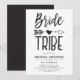 Convites de chuveiro de noiva personalizados para o seu tribo de noiva especial. Possui um visual clássico em preto e branco com as palavras tribo de noiva escritas em fonte estilo manuscrito. Entre as duas palavras há uma flecha tribal perfurando um coração.