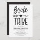 Convites de chá de noiva personalizados para a sua tribo de noiva especial. Possui um visual clássico em preto e branco com as palavras tribo da noiva escritas em fonte estilo manuscrito. Entre as duas palavras há uma flecha tribal perfurando um coração.