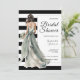 Este convite de chá de panela em verde sage com listras pretas e brancas combina elegância e estilo moderno, tornando-o perfeito para um chá de panela sofisticado. O design apresenta listras pretas e brancas ousadas, oferecendo um visual contemporâneo, enquanto a noiva em aquarela em verde sage suave e as fontes elegantes adicionam um toque de charme atemporal. Este convite captura lindamente a emoção e a alegria de celebrar a noiva.