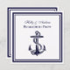 Elegante Marinho de Âncora Náutica Moldado de Azul - Convite Festa de noivado Acessórios de festa limpas, elegantes, personalizáveis para chic e na moda com um quadro azul clássico de marinho e uma âncora azul centrada no marinho. Este produto faz parte de um conjunto de designs correspondentes que são facilmente personalizáveis para muitas ocasiões e eventos. Se você precisar de placas RSVP separadas, Obrigado, notas, carimbos, ímanes, etiquetas de garrafas, menus, cartões de escolta, programas de eventos, etiquetas de favorecimento ou outros acessórios, por favor, verifique nossas outras listas. Se você não vir um produto correspondente ao qual você está interessado, ou gostaria de ver este design em cores diferentes, por favor entre em contato conosco e ficaremos felizes em acomodá-lo. Observe que esta é uma design gráfica / foto que é transferida para o produto subjacente e não contém tecidos, fita, metais, gravura, joias ou gravuras reais. 2013 ©TheMyPartyDesigns Todos os direitos reservados