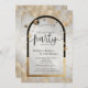 Sol e lua de ouro celestial e estrelas sobre uma aquarela e fundo de ouro. Bela festa de noivado pode ser personalizada com seu nome. Selecione o botão "personalizar" para alterar o estilo, a cor e o tamanho da fonte.