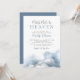 Convite de Chá de Noiva "Casamento Feito no Céu". Celebre a noiva com este design simples e elegante que oferece uma interpretação refinada de um tema sonhador e romântico. “Casamento Feito no Céu” é apresentado no topo em caligrafia elegante e manuscrita, combinada com uma fonte serifada clássica para os detalhes do evento, tudo em uma mistura sofisticada de tons cinza e azul.