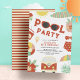 Convite de Aniversário para Rapariga Moderna do Partido da Piscina Retro Esta tendência e este convite bonitinho definem a palco de uma piscina inesquecível ou de uma praia. Mergulhe em um oásis tropical, cheio de palmeiras, cores vibrantes e motivos retrorinspirados. A reviravolta moderna adiciona um toque de talento, fazer perfeito para a mais bonita e legal aniversariante. Prepare-se para fazer um salto na piscina enquanto aproveita as vibrações nostálgicas do tema retrô. Com uma mistura de elementos clássicos e contemporâneos, esse convite capta a essência de uma festa de aniversário cheia de diversão e na moda. Não perca a suprema reunião de verão!