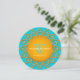 Cartão de convite de combinação de cores azul aqua e laranja adequado para uma variedade de eventos especiais. Todos os textos são totalmente personalizáveis, incluindo estilo de fonte, cor e layout