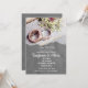 Incline os seus convidados com este cartão de convite para noivados minimalista que inclui uma imagem de anéis de noivado e disposições florais brancas. Basta adicionar os detalhes do seu evento neste modelo fácil de usar para torná-lo um único. Consulte o repositório para itens correspondentes