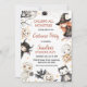 Crianças Negras de Halloween Festas de Festas de Figurino Aniversário Convite Cute neutro de gênero no Dia das Bruxas com vários filhos em fantasias de Halloween, taco, abóbora, lua, estrelas em branco, preto e marrom. ideal para uma festa de aniversário de crianças no Dia das Bruxas.