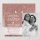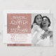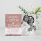 Folha de ouro elegante, giro, simples e moderna, rosa, e impressão brilhante, cartões de anúncio de noivado. Este design clássico e sofisticado é perfeito para o casal clássico, de tendências e na moda de casamentos. Personalize com sua própria mensagem na frente e um monograma personalizado inicial no verso. Todas as impressão de fotos.