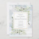 Com delicadas cores aquáticas, folhas verdes em fundo de gelo no inverno, este simples convite para festas de noivado botânica moderna pode ser personalizado com seus detalhes especiais de festa de noivado, com sua foto no verso. Projetado por Thisnotme©