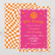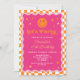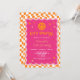 Um convite de aniversário de uma garota, rosa e laranja feliz.