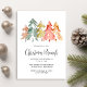Simples e elegante convite para brunch de Natal, com abstrato de cor d'água de pinheiros em verde-mudo, vermelho, ouro e laranja e "Brunch de Natal" em um roteiro de na moda.