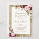 Convite à Festa de noivado Dourada brilhante com brilho, apresentando belíssimos rosas de burgundy e de cor-de-água rosada