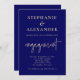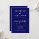 Convites Noivado de script Dourado azul de Marinho mínimo
