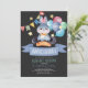 O convite de aniversário deste menino bonito mostra um coelho coelho olhando do chapéu de um mágico com estrelas de ouro falsas/falsas, bandeiras de bunting e balões coloridos em aquarela em um fundo de cinza escura. O verso apresenta um fundo preto com bolinhas. Personalize para suas necessidades. Você pode encontrar mais produtos correspondentes na minha loja.
