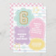 convite de aniversário do pastel varsity preppy patch com corações, margaridas, bola de disco e fundo do verificador.