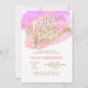 Adoráveis convites de aniversário modernos para a festa de comemoração de mulher/menina. Festa de aniversário em letras grandes brancas com cor d'água rosa cor púrpura design com falso traço de pincel dourado. Lá atrás está o nome da menina. Imprima seus convidados com estes convites!
