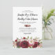 Convites de casamento rústicos elegantes com um fundo branco simples que pode ser alterado para qualquer cor, uma variedade de flores de água-marinha em marsala, burgundy e rosa pálido, e um modelo de casamento moderno.