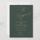 Convite de noivado com caligrafia luxe ArtsApp, um convite faça-você-mesmo em verde floresta com folha de ouro falso. Todos os elementos são ajustáveis. Copyright © 2023 ArtsApp™. Todos os direitos reservados.