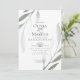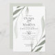 ANÚNCIO DO noivado | Convide os seus convidados a comemorar o seu noivado com esta moderna cor d'água folhas verdes do ramo de oliveira num semoval com centro desbotado. O reverso é uma cor complementar coordenada. Personalizar texto, estilo de fonte, cor e tamanho. Arte original criada para o BarefootBride™ por © WhimsicalArtwork™ - Esta é parte de um Conjunto completo de Artes de Casamento, chá de fraldas e outros artigos de papelaria para eventos semelhantes.