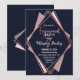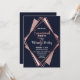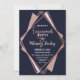Elegante, chique, e moderno com uma impressão retro, o esboço geométrico impresso falso da forma do diamante do ouro cor-de-rosa em azuis marinhos, malva, e cora entalhe cor-de-rosa do diamante, convites da festa de noivado. Este design clássico e sofisticado é perfeito para o casal de casamento elegante, na moda, e à moda. Personalize com sua própria mensagem na parte dianteira e um monograma personalizado na parte traseira. Todo o design do impressão da foto.