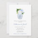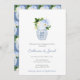 Azul clássico e florais brancos em um vaso de gengibre para este design de convite. Eu defini o modelo para uma Festa de noivado, mas todos os campos de texto são personalizáveis para suas necessidades.