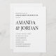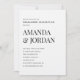 Celebre seu amor com elegância eterno. Este convite de festa de noivado ultra-minimalista apresenta uma tipografia negra limpa num fundo branco nítido, sofisticação e simplicidade perfeitamente equilibradas. Com nomes ousados de serifas empilhados para impacto e detalhes refinados de sans-serif, esse design é ideal para casais modernos que apreciam o luxo subestimado. Totalmente personalizável para seus detalhes de evento, este convite combina lindamente com temas de eventos em preto e branco, texturas de linho e sinalização acrílica.