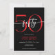 Moderno e chic, este convite de aniversário combina preto clássico e branco com sotaques de vermelho vivo. É um design mínimo é um design simples e divertido para celebrar o aniversário do marco. Criado pela imprensa simplesmente de farmácia.
