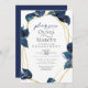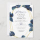 Convites Noivado Moderno do índio Profundo Azul e Dourado