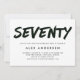 Este convite de aniversário moderno e mínimo apresenta um texto de caneta marcador preto sujo sobre fundo preto.