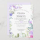 ANÚNCIO DO noivado | Enquadrado com um buquê primavera de flores lilás e cor-de-rosa com abundância de verde. O reverso é uma cor complementar coordenada. Personalizar texto, estilo de fonte, cor e tamanho. Design criado para o BarefootBride™ por © WhimsicalArtwork™ - Esta é parte de um Conjunto de Papel de Casamento completo com casamento, chá de fraldas e outros artigos de papelaria de eventos semelhantes.
