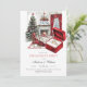 Celebre seu amor com nosso encantador convite ao Noivado de Natais vintages do velho dinheiro vermelho clássico. Apresentando uma impressionante cena aquática de uma bela mesa de jantar decorada e uma alta árvore de Natal, esta design exumenta elegância e calor. Os detalhes do anel de noivado ocular acrescentam um toque pessoal, fazer-o perfeito para o seu anúncio especial. Ideal para noivados de férias, este convite dá o tom festivo perfeito para sua celebração.