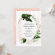 Convidar festa de noivado de cor-de-água verde com quadro geométrico rosa dourado. Os florais cor-de-rosa pincelados e a lavagem com aquarela complementam o design.