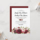 Convites de casamento rústicos elegantes com um fundo branco simples que pode ser alterado para qualquer cor, uma variedade de flores de água-marinha em marsala, burgundy e rosa beije, e um modelo de casamento moderno.