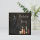 Convites legais, elegantes e engraçados para despedida de solteiro no estilo gótico com um incrível noivo esqueleto horrível vestido com um chapéu-coco preto formal e terno / cartola e fraque com uma bengala elegante apontando para garrafas de bebidas alcoólicas de champanhe e uísque ao lado dele chamadas Vírus Zumbi, Fantasma Líquido, Veneno de Rato, Suco de Embalmar e Veneno de Aranha Antigo. O fundo é uma colagem sombria e desgastada de redemoinhos e floreios elegantes. Convites divertidos, sofisticados e modernos para góticos ou para o Halloween. Todo o texto pode ser facilmente personalizado para atender às suas necessidades e você pode alterar o estilo da fonte, a cor e o tamanho da fonte, se desejar. Se precisar de ajuda para personalizar seu produto, entre em