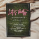 O neon rosa inspirou o script do "Partido do Vamos" sobre o fundo verde de madeira de boxwood com texto branco personalizado.