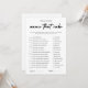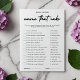 Está querendo adicionar diversão e entusiasmo ao seu chá de panela? Não olhe além do nome moderno que diz o cartão de jogo de Chá de panela de Bolo. Este jogo envolvente é perfeito para criar momentos memoráveis com amigos e familiares. Name This Cake (Bolo) é um jogo de chá de panela popular onde jogadores correm contra o relógio para combinar pistas com diferentes tipos de bolos. Não é apenas um golpe em chás de panela, mas também em festas de solteira, chás de fraldas e festas de aniversário de crianças. Quer você seja um compositor de bolo ou apenas ame um doce desafio, este jogo vai mantê-lo entretido por horas. O moderno nome que o cartão de jogo do Chá de panela de bolos vem em um design preto e branco elegante, adicionando um toque de elegância ao seu evento. O estilo minimalista garante que ele se ajustado perfeitamente em qualquer tema ou decoração do chá de panela. Este jogo personalizável permite personalizá-lo com os nomes dos casais, a data do casamento ou qualquer outra mensagem especial. É uma maneira séria e única de celebrar os recém-casados. Então reúna seus entes queridos, pegue uma fatia de bolo, e deixe a diversão começar com o moderno nome que faz o cartão de jogo do Chá de panela do Bolo. Prepare-se para rir, competir e criar memórias duradouras. Não perca essa adição obrigatória às suas festividades de chá de panela.