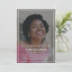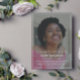 Convite para comemoração da vida com texto branco contra uma foto do seu amado. A foto será mudada por um filtro de cinzas transparente para tornar o texto mais visível.